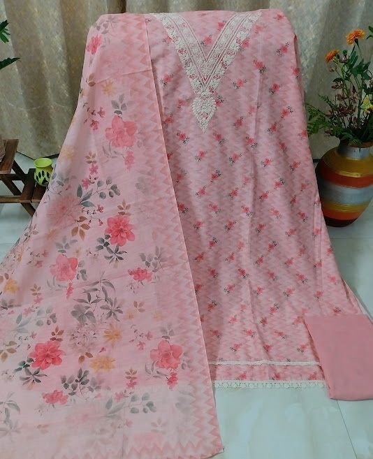 We offer a stylish Cotton Linen Printed Unstitched Suit with Embroidery Bottom and Cotton Rayon Dupatta, perfect for casual wear. This suit features an attractive pattern, providing both comfort and style. The unstitched stitch type allows for customization to fit your unique style. The fancy printed cotton dupatta adds a touch of elegance to the outfit. Made in India, this ensemble is ideal for exporters, retailers, and traders looking to offer high-quality, fashionable clothing to their customers.