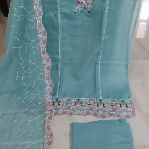 Top Pure Kota Cotton with Thread Embroidery Unstitched Suits