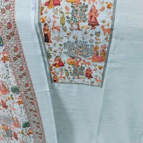 Muga Cotton Print Unstitched Suit with Madhubani Print Bottom Pure Cotton Dupatta