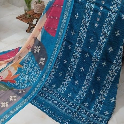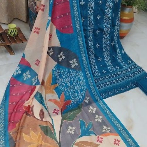 Glace Cotton Printed Bottom Cotton Rayon Dupatta Unstitched Suit
