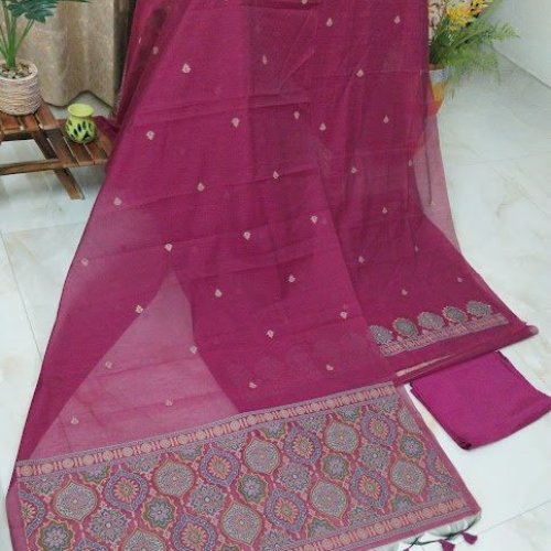 Cotton Silk Thread Woven Bottom Unstitched Suits with Pure Shantoon Dupatta
