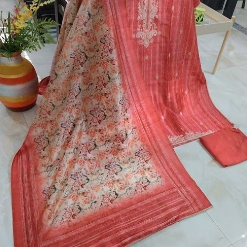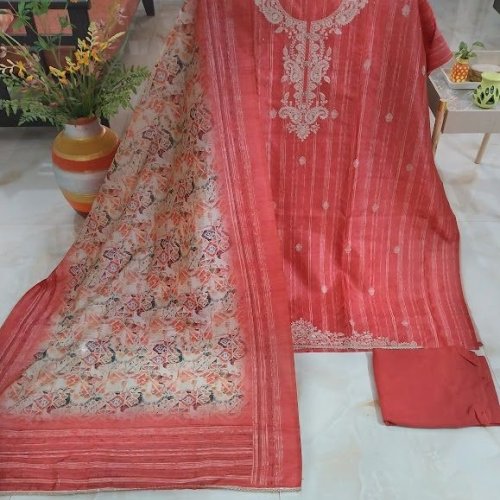 Maheshwari Silk Kashmiri Embroidery Unstitched Suit with Bottom Cotton Rayon Dupatta
