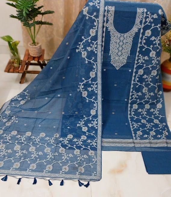 We offer premium Muga Cotton Shantoon Bottom Unstitched Suits, crafted in India for the modern woman. Perfect for party wear during summer, these printed suits feature intricate Chikankari work on soft cotton material. Each set comes in a convenient plastic packet, ready for easy wash and stitching. Ideal for females, these suits exude elegance and style, making them a must-have in every wardrobe. Elevate your fashion game with our high-quality, authentic Indian suits that blend tradition with contemporary design. Manufacturer and supplier of exquisite unstitched suits for all occasions.