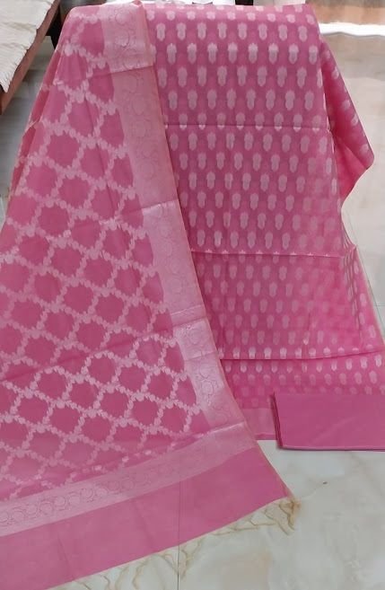 We offer a premium Soft Peach Chanderi Zari Handwoven Unstitched Suit with Cotton Silk Bottom, perfect for summer formal and festive occasions. Made from pure Chanderi with a cotton silk bottom, this set includes 2.5 meters of each fabric. The elegant zari woven design adds a touch of sophistication. Care instructions recommend avoiding machine wash. Ideal for exporters, suppliers, and traders looking to provide high-quality ethnic wear. Elevate your collection with this exquisite suit set that exudes luxury and style.