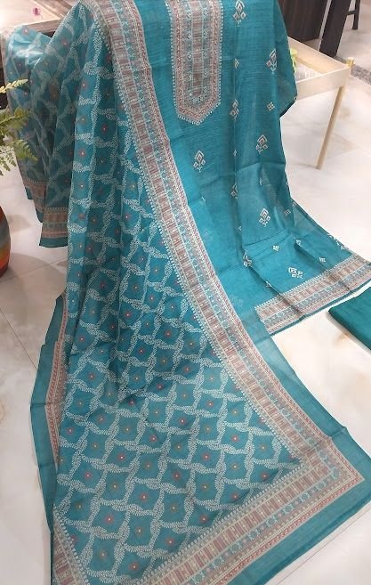 We offer a stylish Cotton Linen Printed Unstitched Suit with Embroidery Bottom and Cotton Rayon Dupatta, perfect for casual wear. This suit features an attractive pattern, providing both comfort and style. The unstitched stitch type allows for customization to fit your unique style. The fancy printed cotton dupatta adds a touch of elegance to the outfit. Made in India, this ensemble is ideal for exporters, retailers, and traders looking to offer high-quality, fashionable clothing to their customers.