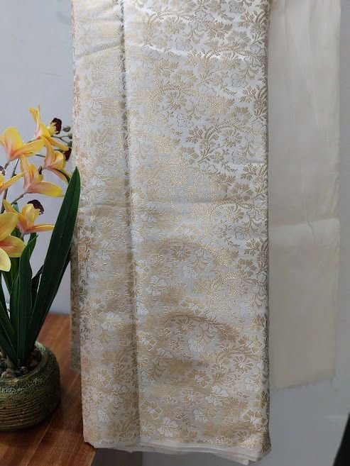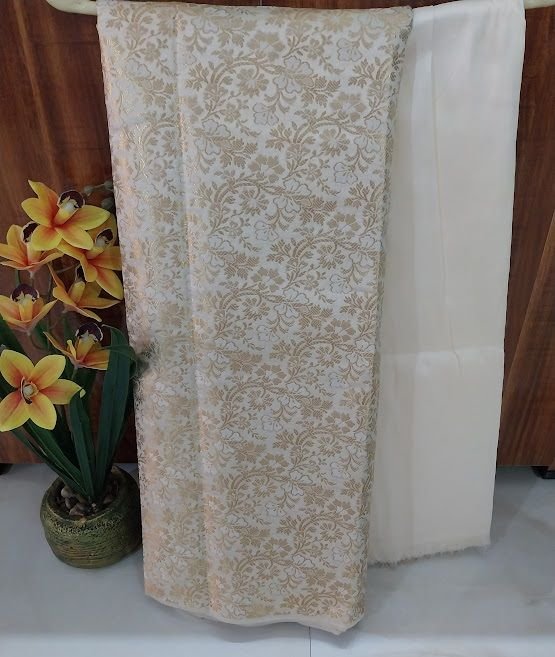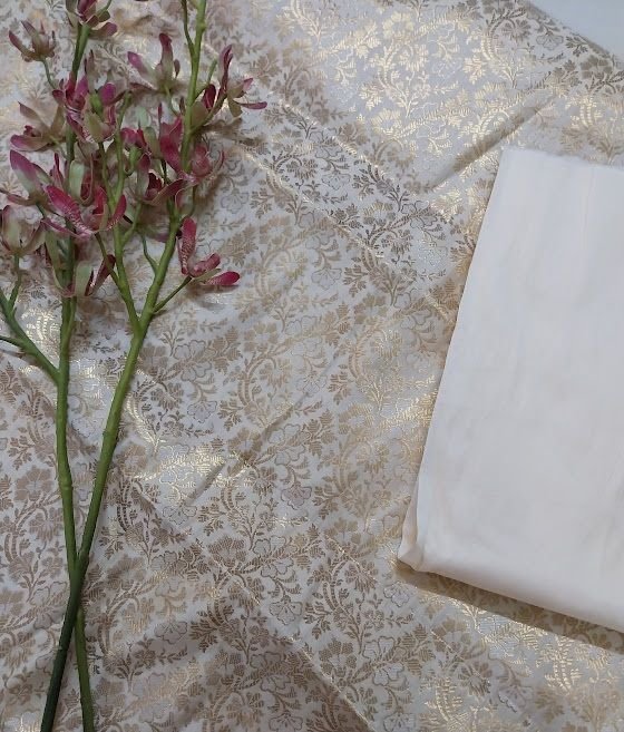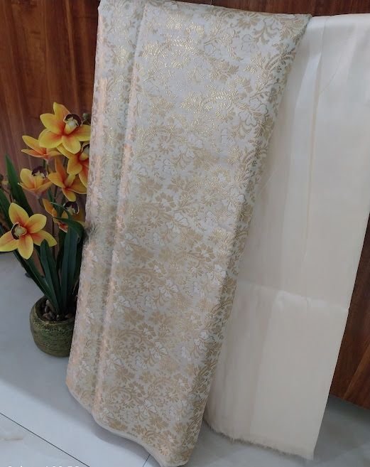 We are a leading Manufacturer and Supplier of premium Ivory Brocade Silk Woven Unstitched Co-ord Sets Fabric sourced from India. Our high-quality silk fabric features intricate brocade woven patterns in a classic ivory color, perfect for creating stylish co-ord sets. The fabric is meticulously woven using traditional techniques, ensuring durability and elegance. Ideal for crafting unique and fashionable outfits, this versatile material offers endless design possibilities. Elevate your collection with this luxurious silk co-ord set fabric that exudes sophistication and charm.